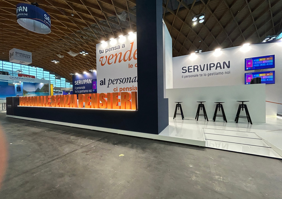 La realizzazione per Servipan al TTG conferma la capacità di Metodo 79 di creare allestimenti che non sono solo "scenografie", ma veri strumenti di marketing. Ogni elemento, dalla scelta del carattere tipografico alla gestione delle luci, è stato eseguito per trasformare lo stand in un punto di riferimento per l'innovazione nei servizi turistici.