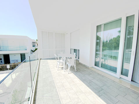 Appartamento 6 posti letto al piano primo con ingresso indipendente in contesto residenziale di sole 6 unità abitative, composto da soggiorno-cucina open-space, dotato di ampia e luminosa vetrata che porta alla generosa veranda esterna dalla quale è visibile la piscina. La piscina comune è accessibile in orari prestabiliti, e garantisce un posto con lettino privato ad ogni unità. Il villaggio è vicinissimo a piazza Aurora, a 600 mt dalla spiaggia omonima.
